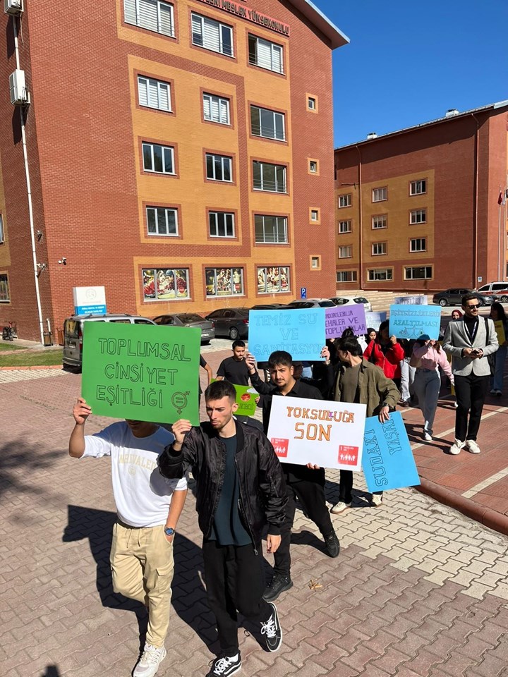 The students informed the local community with the banners they prepared, emphasizing the importance of joining hands for a sustainable future. The event aimed to increase public awareness of the Sustainable Development Goals and to strengthen their integration with our values and implementation in all areas of life.