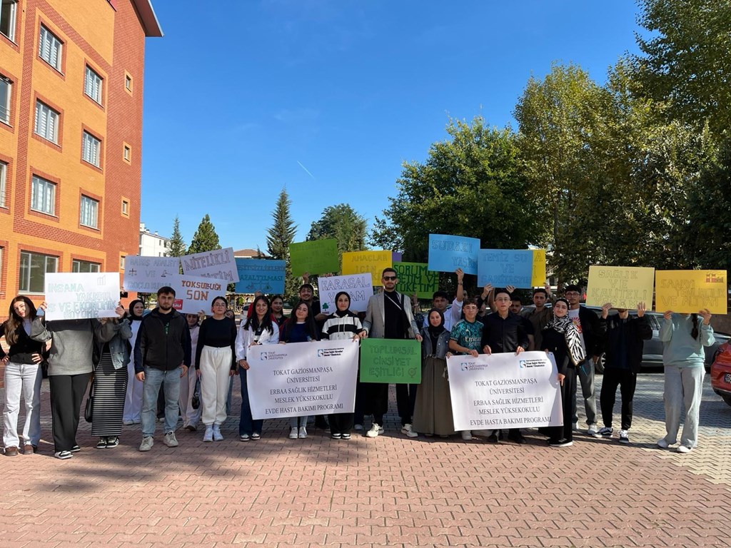 First-year students of the Home Care Program at Erbaa Vocational School of Health Services organized an awareness walk in Erbaa under the coordination of Lecturer Abdurrahim Uyanık, within the scope of the course “Our Values”, to draw attention to the United Nations Sustainable Development Goals (SDGs).