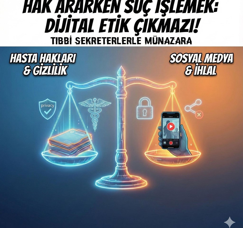 Tıbbi Dokümantasyon ve Sekreterlik Programı 2. sınıf öğrencilerimizle, Meslek Etiği dersi kapsamında; sağlık kurumlarında sıkça karşılaşılabilecek gerçekçi bir vaka üzerinden gizlilik, hasta hakları, KVKK, sosyal medya etiği ve kriz yönetimi konuları hukuki temelli bir münazara ile ele alındı.