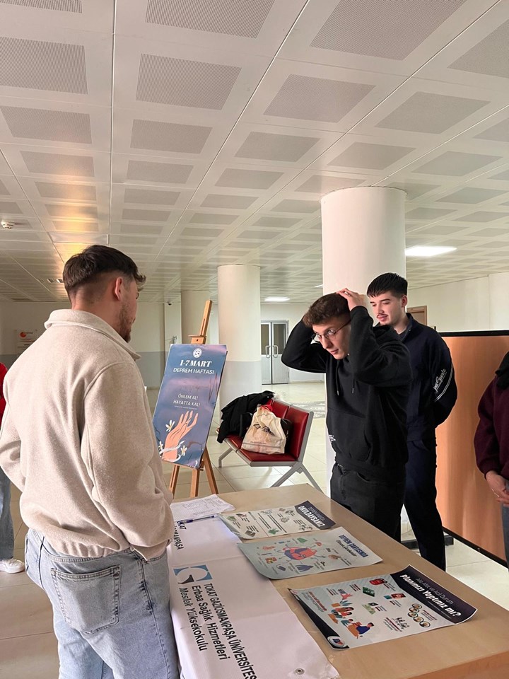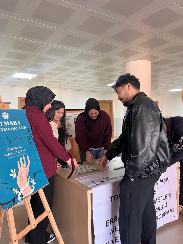 1–7 Mart Deprem Haftası kapsamında okulumuzda farkındalık oluşturmak amacıyla İlk ve Acil Yardım Programı öğretim elemanları ve öğrencileri tarafından bilgilendirme standı kuruldu.