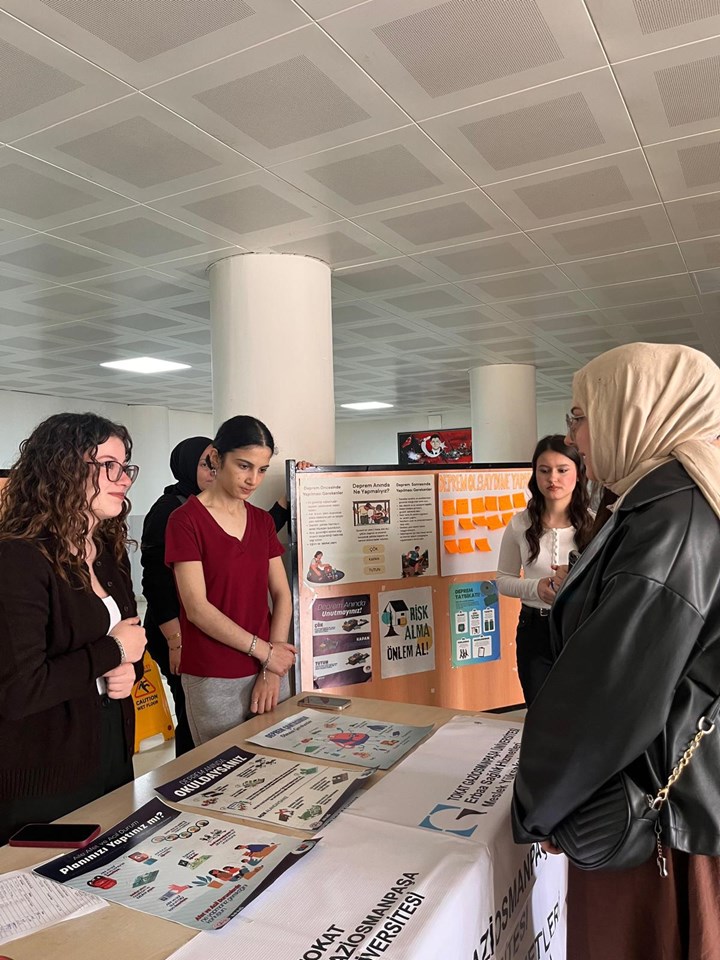 Öğrencilerimiz, deprem anında ve sonrasında yapılması gereken doğru davranışlar hakkında bilgilendirme yaparak toplumda afet bilincinin önemine dikkat çektiler.